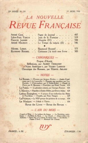 La Nouvelle Revue Française (1908 - 1943) N° 259 avril 1935