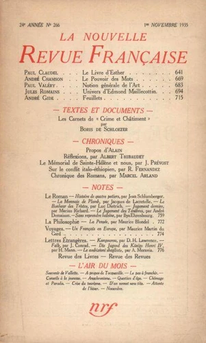 La Nouvelle Revue Française (1908 - 1943) N° 266 novembre 1935