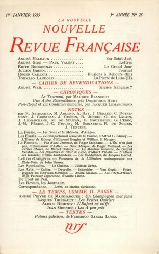 La Nouvelle Revue Française N° 25, janvier 1955