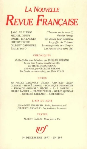 La Nouvelle Revue Française N° 299 décembre 1977