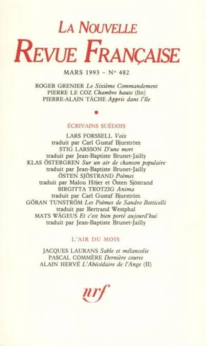 La Nouvelle Revue Française N°482, mars 1993