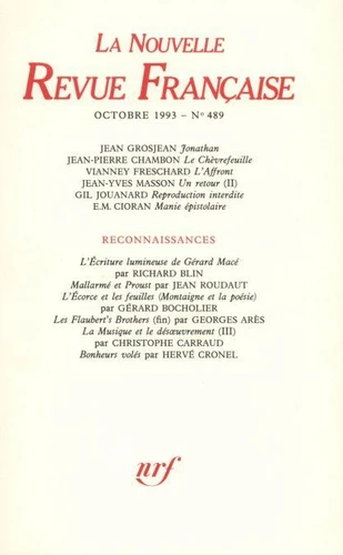 La Nouvelle Revue Française N° 489, octobre 1993