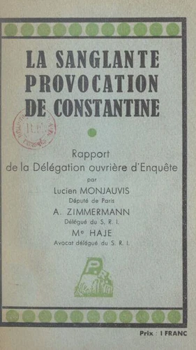 La sanglante provocation de Constantine. Rapport de la Délégation ouvrière d'enquête