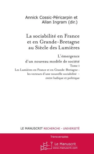 Ce premier volume de Transversales constitue le premier volet des travaux de spécialistes des études sur le dix-huitième siècle français et britannique. Dans le cadre d'un projet de la Maison des Sciences Humaines de Bretagne (MSHB), « La sociabilité en France et en Grande-Bretagne au Siècle des Lumières : l'émergence d'un nouveau modèle de société », ces chercheurs tentent de redéfinir les modes opératoires de la sociabilité pour chacune des deux nations, à partir de sources dont certaines sont célèbres mais d'autres peu connues de la critique, et s'interrogent sur la réalité de la supériorité du modèle français de sociabilité.