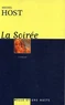 Deux mondes se rencontrent dans La Soirée de Michel Host. Le monde bourgeois convenu, représenté par le notaire, le narrateur du récit, et le monde des êtres démunis incarné en la personne d'Adriana, une domestique portugaise. Le narrateur est cloué sur son lit : il lui reste huit jours à vivre. Il les passe entre sa jeune femme, Camille, et Adriana. Camille a délaissé son vieux mari depuis longtemps en faveur d'un jeune Américain, trafiquant de pierres précieuses.
