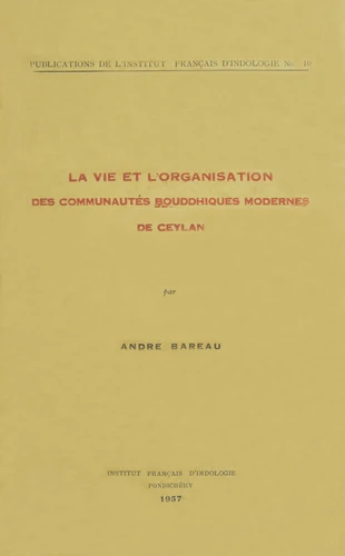 Cet ouvrage consacré aux communautés bouddhiques de Ceylan s'intéresse tout d'abord aux monastères modernes, présentant leurs diverses composantes : temple (vihara), stupa, arbre de la bodhi, salle de prédication, salle capitulaire, bibliothèque, bâtiments résidentiels, édicules rituels, salles de cours et ermitages. Il examine aussi brièvement, de manière à fournir des points de comparaison, les monastères singhalais anciens.