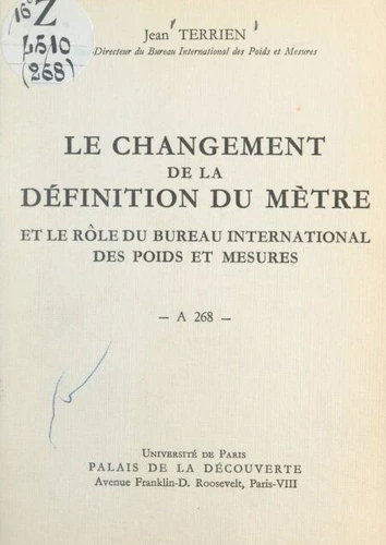 Le changement de la définition du mètre et le rôle du Bureau international des poids et mesures. Conférence donnée au Palais de la découverte, le 26 novembre 1960