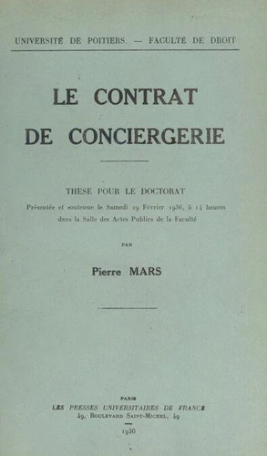 Le contrat de conciergerie. Thèse pour le Doctorat, présentée et soutenue le samedi 29 février 1936, à 14 heures dans la Salle des actes publics de la Faculté