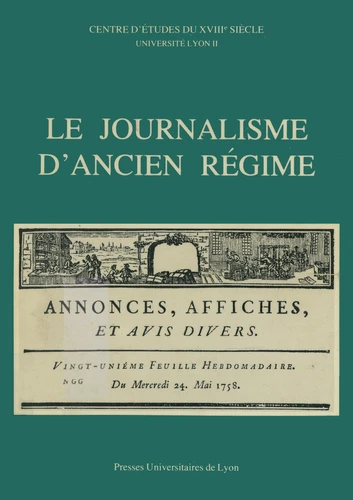 Non le journalisme n'est pas né avec Émile de Girardin. Même si elle ignore encore les grands tirages, la presse d'Ancien Régime fait déjà preuve d'une belle vitalité. Longtemps assez mal connue, peu étudiée, elle se révèle depuis quelques années pour ce qu'elle est : une manifestation essentielle de la vie intellectuelle, où interfèrent politique et économie, littérature et idéologie. Faire le point de connaissances qui s'accumulent à un rythme rapide, délimiter de nouveaux champs de recherche, élaborer une approche spécifique du phénomène journalistique, telles furent les ambitions que se sont fixées les spécialistes de la presse ancienne réunis à Lyon en juin 1981.