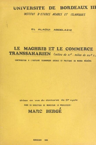 Le Maghrib et le commerce transsaharien, milieu du XIe - milieu du XIVe siècle. Contribution à l'histoire économique, sociale et politique du Maroc médiéval. Thèse en vue du Doctorat de 3e cycle