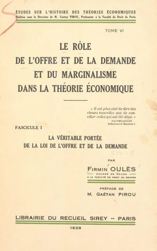 Le rôle de l'offre et de la demande et du marginalisme dans la théorie économique (6). La véritable portée de la loi de l'offre et de la demande