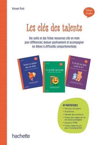 Pour mettre en oeuvre les différentes approches pédagogiques abordées dans ses romans (Comme un poisson dans ma classe, Y a de l'éval' sur la toise, Tu me fais une place à côté de toi ?, On peut se dire un mot ?), Vincent Paré propose dans cet ouvrage des fiches photocopiables et des outils concrets et clés en mains que les enseignants pourront s'approprier facilement et utiliser dans leur enseignement. Ces ressources, destinées à une exploitation immédiate dans les classes du cycle 1 au cycle 3, répondent à trois problématiques majeures : la différenciation, l'évaluation positive, et l'accompagnement des élèves à difficultés comportementales. Chaque outil est accompagné d'une explication pour le mettre en place concrètement dans sa classe et l'utiliser tout au long de l'année.
