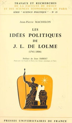 Les idées politiques de J. - L. de Lolme. 1741 - 1806