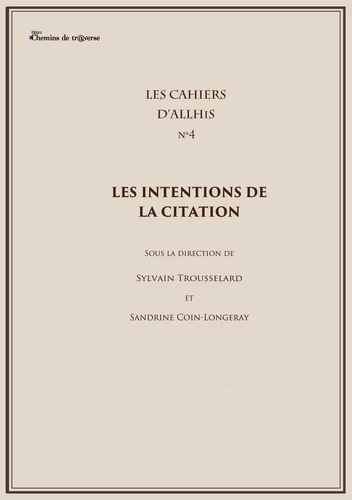 À la lumière des études composant cet ouvrage apparaît l'infinie variété des intentions de la citation : au delà des catégories traditionnelles de l'exempla, de l'auctoritas et de l'ornementatio, la citation sert également à surprendre, à dissimuler comme à révéler, à protéger et surtout à convoquer sous une forme brève une pensée différente, tout un univers conceptuel ou fictionnel autre avec toute sa complexité et ses connotations.
