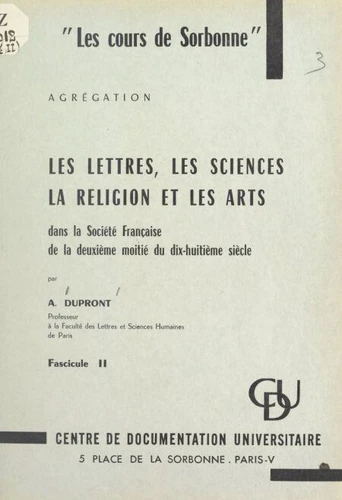 Les lettres, les sciences, la religion et les arts dans la société française de la deuxième moitié du XVIIIe siècle (2)