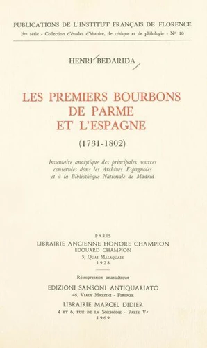 Les premiers Bourbons de Parme et l'Espagne, 1731 - 1802. Inventaire analytique des principales sources conservées dans les Archives espagnoles et à la Bibliothèque nationale de Madrid