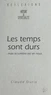 Ce livre : « Les temps sont durs. », est une réflexion sur les époques difficiles, comme la nôtre, où ne manquent pourtant jamais les « Témoins de Lumière » qui nous permettent de garder l'espoir. Deux d'entre eux, en particulier, Bodhidharma et Boèce, qui vécurent tous deux au Ve siècle, l'un en Chine, l'autre en Europe, dans des époques aussi troublées que la nôtre, nous apportent leurs témoignages.