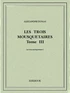 Premier volume de la trilogie comprenant également Vingt ans après et Le vicomte de Bragelonne. Le roman raconte les aventures d'un Gascon désargenté de 18 ans, d'Artagnan, monté à Paris faire carrière. Il se lie d'amitié avec Athos, Porthos et Aramis, mousquetaires du roi Louis XIII. Ces quatre hommes vont s'opposer au premier ministre, le Cardinal de Richelieu et à ses agents, dont la belle et mystérieuse Milady de Winter, pour sauver l'honneur de la reine de France Anne d'Autriche.