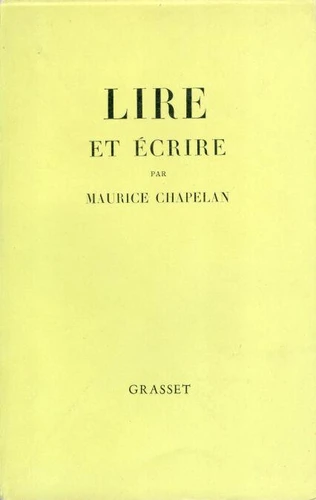 Ma femme les achète au petit bazar de Coye. "Cette forme littéraire, qui lui est la plus naturelle, a aussi l'avantage de se concilier fort bien avec le métier de journaliste et celui d'éditeur que Maurice Chapelan mène de front. S'il a intitulé Lire et écrire les nouveaux extraits de ses carnets que voici, c'est qu'il s'agit de réflexions qui lui ont été inspirées à la fois par sa double activité professionnelle et, bien entendu, par un retour sur lui-même en tant qu'homme qui lit et qui écrit avant tout pour son plaisir.