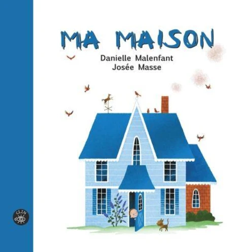 Ma maison s'élève blanche et bleue juste en dessous du ciel joyeux.