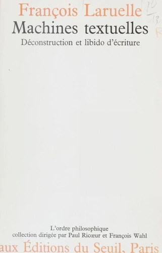 Traitant de la déconstruction, cet essai se propose : - Un but unique et dédoublé. Il s'agit d'en analyser systématiquement les techniques, sur la base du travail de J. Derrida ; mais aussi d'en problématiser la possibilité. - Un déplacement et une greffe. La déconstruction est transposée ici dans une problématique machinique et matérialiste dont la clé est la libido dans sa version nietzschéenne.