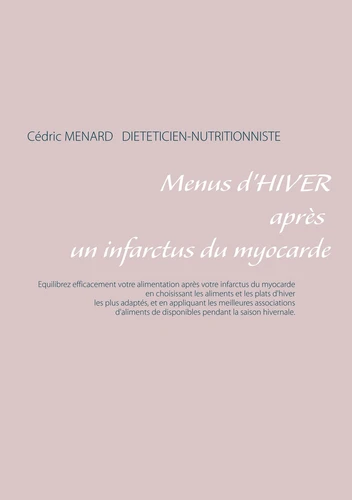 L'auteur vous propose trois mois de menus spécifiquement adaptés aux suite nutritionnelles à mettre en oeuvre après un infarctus du myocarde, tous très simples à mettre en pratique grâce à des plats, des légumes et des fruits d'hiver vous étant proposés, vous permettant ainsi de mieux adapter votre alimentation à votre cardiopathie.