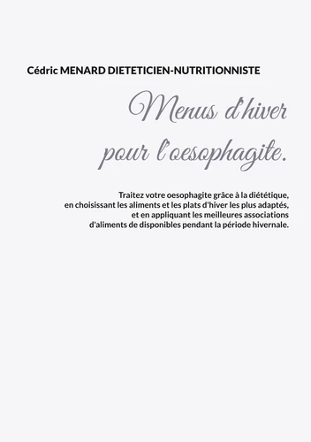 L'auteur vous propose trois mois de menus spécifiquement adaptés à votre oesophagite, tous très simples à mettre en pratique grâce à des plats, des légumes et des fruits d'hiver vous étant proposés, vous permettant ainsi de mieux adapter votre alimentation à votre pathologie.