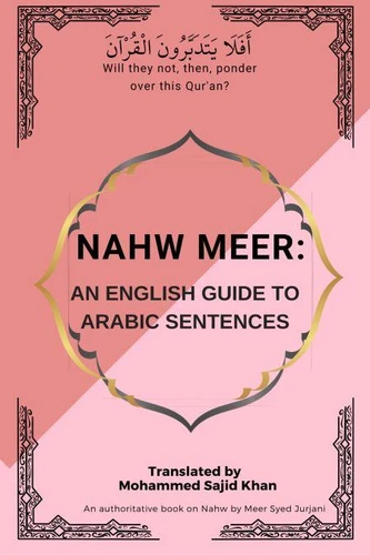 An English Translation of Nahw Meer with Arabic in red for the student of Arabic Grammar by Meer Syed Shareef Abul Hasan Bin Mohammed Al-Jurjani (RA). Ilm un Nahw is that science which teaches us how to join Nouns, Verbs and Particles to form a complete sentence and what the vowel of the last letter of each word should be. This science started from the time of Omar bin Al-Khattab (RA) when one of the Bedouins read part of the Ayah 3 of Surah At-Tauba with a Kasrah at the very end as rasulihi instead of Dammah as in rasuluhu.