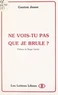 « Ne vois-tu pas que je brûle ? » est un roman d'amour dédié à la vie si souvent corsetée, au respect d'autrui méprisé dans sa différence, à la jeunesse que nous avons tant vilipendée du haut de nos rigides certitudes. Raconté par un adolescent de nulle part, dans une langue préservée, on y saisit combien les purs élans d'un petit d'homme meurtri viennent se briser sur le roc de l'indifférence et des trahisons ; et de lettres en lettres adressées au médecin jaillissent dans un exceptionnel pouvoir d'évocation les espoirs voilés, les nostalgies poétiques et tendres, mais aussi les violences de la révolte et les abandons de la résignation s'inscrivant sur les pierres dormantes du monde comme il va.
