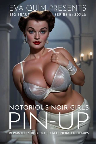 Big, Beautiful Girls in Trouble!Notorious Noir Girls, the first in my new SDXL2 series, includes 57 full-page high-resolution renderings, hand-repainted and retouched AI output featuring a bevy of busty beauties in all their retro movie star glory, and 10 additional pages of marketing shots for the fictional film Eight Deadly Words and Fatally Blonde, directed by the famous fictional director, Rusty Mayer, who is in no way my fictional version of Russ Meyers.