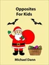 Learn opposites with things associated with Halloween, Christmas and Easter:Halloween Book Of OppositesBig pumpkin, small pumpkin, happy ghost, sad ghost, same bats, different bats, fat cat, thin cat, tall skeleton, short skeleton, closed coffin, open coffin, many spiders, few spiders, young witch and old witch. Christmas Book Of OppositesOld Christmas tree, new Christmas tree, quiet shepherd, loud shepherd, left mitten, right mitten, fast reindeer, slow reindeer, long candy cane, short candy cane, full stockings, empty stockings, heavy gift, light gift, first snowman, last snowman, thick candles, thin candles, dirty sleigh, clean sleigh, sick Santa Claus and healthy Santa Claus.