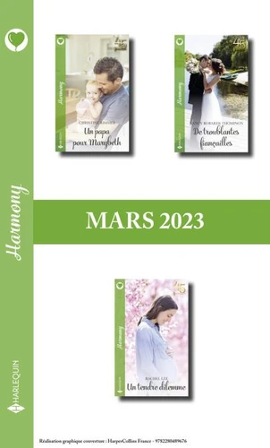 Intégrale 3 romans de la collection Harmony : tous les livres Harmony de Mars 2023 (N°97 à 99) en un seul clic !Un papa pour Marybeth, Christine Rimmer - rééditéUn tendre dilemme, Rachel Lee - rééditéDe troublantes fiançailles, Nancy Robards Thompson - réédité