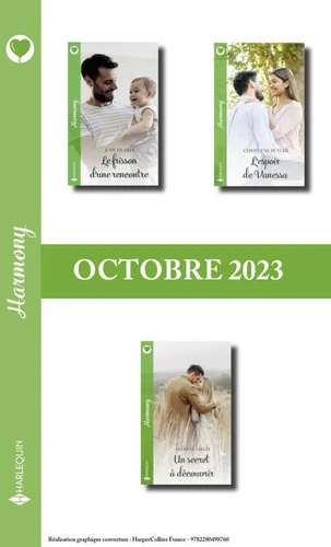Intégrale 3 romans de la collection Harmony : tous les livres Harmony d'Octobre 2023 (N°118 à 120) en un seul clic !L'espoir de Vanessa, Christyne Butler - rééditéUn secret à découvrir, Allison Leigh - rééditéLe frisson d'une rencontre, Judy Duarte - réédité