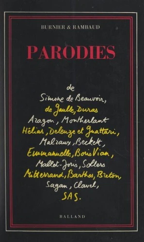 Parodies. De Simone de Beauvoir, Per Jakez Hélias, Marguerite Duras, Henry de Montherlant, Gilles Deleuze et Félix Guattari, André Malraux, Samuel Beckett…