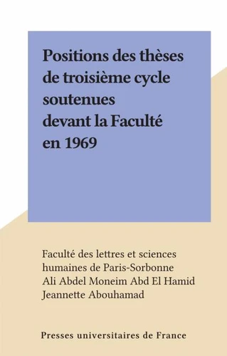 Positions des thèses de troisième cycle soutenues devant la Faculté en 1969