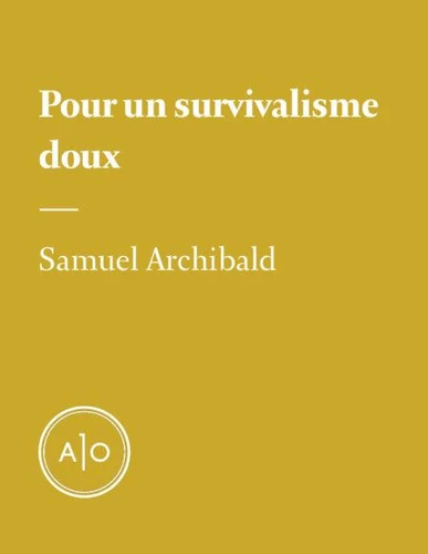 Considéré dans ce texte: La fin du monde. Le survivalisme et le néosurvivalisme. Jusqu'au déclin, les preppers et les recettes apocalyptiques de Joe Beef. Le désir de catastrophe. La peur. La douceur. Arnold Schwarzenegger.