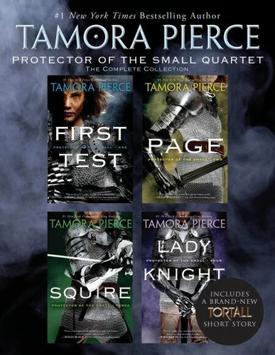 Tamora Pierce's New York Times bestselling series The Protector of the Small Quartet is available now in one ebook collection, including First Test, Page, Squire, and Lady Knight. In the medieval and fantastic realm of Tortall, Keladry of Mindelan (known as Kel) is the first girl to take advantage of the decree that permits women to train for knighthood. But not everyone in Tortall believes a woman is up to the task, and Kel faces harsh discrimination.
