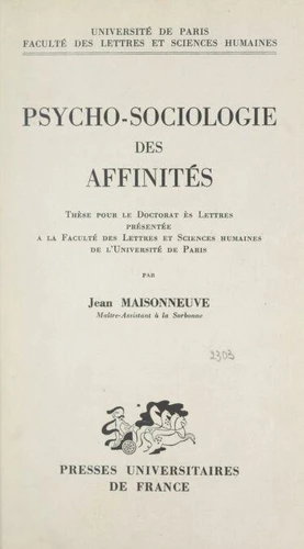 Psycho - sociologie des affinités. Thèse pour le Doctorat ès lettres