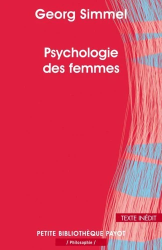 Psychologie des femmes, de Georg Simmel Préface de Jean-Jacques Guinchard Traduit par Frédéric Joly Texte inédit Éditions Payot Pour bien vivre en société, il faut soi-même avoir trouvé la bonne distance avec les autres. Penseur de la sociabilité, du plaisir d'être ensemble, Georg Simmel (1858-1918) est l'un des premiers sociologues à s'être intéressé sérieusement à la question féminine. Il le fit dès 1890, dans cette Psychologie des femmes qui était restée inédite en français.