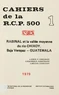 Ce premier volumede la série Rabinal et la vallée moyenne du Chixoy, publié en 1979 dans le cadre des cahiers de la RCP 500, rassemble six articles. Après la présentation géomorphologique de la zone d'étude par Pierre Usselmann, les chapitres 2 et 6 sont consacrés à la description du peuplement de la vallée du Chixoy : peuplement préhispanique pour le premier (estimation démographique d'Alain Ichon, basée sur l'état de conservation des vestiges archéologiques), actuel pour le second (étude de Denise Douzant Rosenfeld sur les hameaux de Rio Negro et de Chicruz).