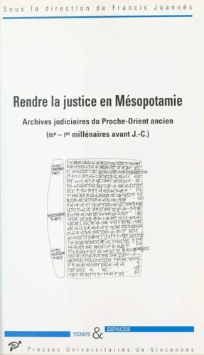 Pendant plus de vingt siècles, les gens de Mésopotamie ont mis par écrit les principes et la pratique de leur justice. À travers une série de procès, de lettres et de contrats en rapport avec des affaires judiciaires, cet ouvrage collectif cherche à présenter de manière concrète comment, du XXIe au Ve siècle avant J.-C., s'est élaboré puis exercé le droit dans l'une des plus anciennes civilisations connues.