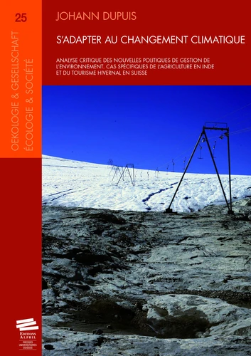 Il examine de manière théorique en quoi l'adaptation au changement climatique nécessiterait des réformes de l'action publique. Puis, il examine l'état des pratiques actuelles au travers d'études de cas dans le secteur agricole en Inde (Rajasthan et Maharashtra) et dans le secteur du tourisme hivernal en Suisse (Alpes vaudoises et vallée de Joux). Sur la base de cette incursion théorique et empirique dans l'univers de ces nouvelles politiques de gestion de l'environnement, l'auteur discute des limitations observées et suggère des voies d'amélioration pour le futur.