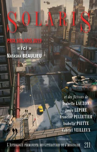 Prix Solaris 2019 : « Ici » de Natasha Beaulieu ; « Toutes alignées morbides » de Gabriel Veilleux ; « Différent » de Francine Pelletier ; « #CroisEnTonChemin » d'Isabelle Piette ; « La Kora désaccordée » d'Isabelle Lauzon ; « Chorégraphie orbitale » de Josée Lepire ; « La Stupéfiante Histoire de la chaussette récalcitrante » de Francine Pelletier.