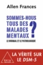 La psychiatrie n'est-elle pas en train de nous égarer en présentant des individus en bonne santé comme des malades ? Tensions, déceptions, peines, pertes et même passions : n'a-t-elle pas de plus en plus tendance à traiter comme des pathologies ce qui relève en réalité de la vie normale ? Inflation diagnostique, surconsommation de médicaments, multiplication de traitements inadaptés et inutiles, dépenses excessives, stratégies marketing sauvages des laboratoires pharmaceutiques : est-ce nous qui sommes malades ou bien la psychiatrie qui devient folle ? Allen Frances a dirigé le groupe de travail qui a conçu et rédigé le DSM-IV, parfois qualifié de « bible de la psychiatrie ».