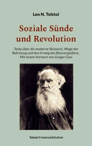 Die vorliegende Sammlung "Soziale Sünde und Revolution" aus der Tolstoi-Friedensbibliothek wird eingeleitet mit einem Vorwort von Gregor Gysi. Der Band vereinigt die zentralen Texte Leo N. Tolstois über das Privateigentum, die Versklavung der Arbeitenden, Wege der Befreiung und den Irrweg des Blutvergießens. Den frühen Ausführungen zur 'Geldtheorie' aus der Schrift "Was sollen wir denn tun?" (1882-1886) folgen Wortmeldungen zur 'Sozialen Frage' und zum politischen Zeitgeschehen aus dem letzten Lebensjahrzehnt des russischen Dichters: Moderne Sklaven (1900); Das einzige Mittel (1901); Der Zar und seine Helfershelfer (1901); An die Arbeiter (1902); Die große soziale Sünde (1905); Das Ende eines Zeitalters: Die bevorstehende Umwälzung (1905); Was tun? (1906); Aufruf an die Russen (1906); Die Bedeutung der russischen Revolution (1906); An den Premierminister P.