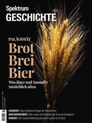Offenbar aßen schon Wildbeuter viel Getreide. Sie bereiteten in großem Stil Brei und Bier zu und backten sogar Brot. Wie die Paläodiät tatsächlich ausgesehen haben könnte und warum die Menschen auf den Feldbau umgestiegen sind, hat ab S. 12 der Wissenschaftsjournalist Andrew Curry aufgeschrieben.