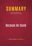 Added-value of this summary:. Save time. Understand Bill Clinton's presidency from a different angle. Expand your knowledge on American politicsTo learn more, read "Because He Could" and discover the secrets behind Bill Clinton's presidency as seen from those on the other side.