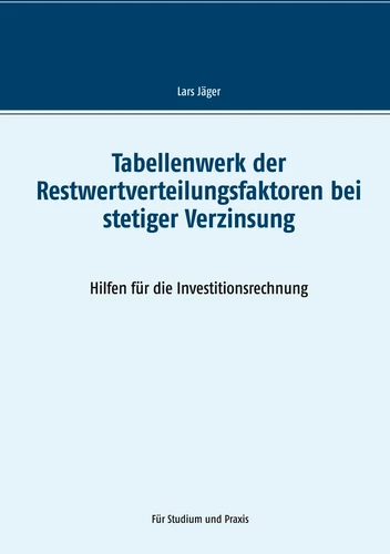 Da bestehende Tabellen recht grobe Zinssprünge (von in der Regel 1 Prozent) enthalten, geht dieses Tabellenwerk einen anderen Weg. Die Abstände in den Zinsvariationen sind bewusst klein gewählt, damit die Anwendbarkeit nicht nur im Studium, sondern auch für die Praxis gegeben ist. Auch werden für negative Zinsszenarien Restwertverteilungsfaktoren stetiger Verzinsung angegeben.