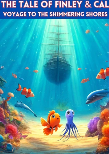 "The Tale of Finley & Cal: Voyage to the Shimmering Shores", a captivating children's story that takes young readers on an unforgettable underwater adventure. Follow the vibrant orange fish, Finley, and his best friend, Cal, a spirited purple octopus, as they embark on a grand journey through the mysterious and beautiful realms of the ocean. From the haunting depths of the Sunken Ship to the bioluminescent wonders of the Midnight Zone, from the towering Great Kelp Forest to the heartwarming return home, Finley and Cal's story is a celebration of friendship, courage, and the joy of discovery.