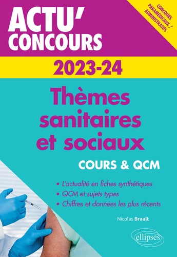 Cet ouvrage dresse un panorama complet des problèmes sanitaires et sociaux de la France actuelle. Il se veut aussi exhaustif qu'objectif sur ces questions, qui sont d'une importance capitale pour l'avenir de notre pays et pour celui de son fameux modèle social, aussi critiqué à l'intérieur qu'envié à l'extérieur. Il présente : Les principaux faits de l'actualité sanitaire et sociale sous la forme de 10 thèmes, divisés eux-mêmes en 40 chapitres, Des fiches claires, concises et complètes, Un état des lieux de la situation actuelle pour chaque thème, les différentes évolutions du problème, les chiffres-clés et les faits essentiels à retenir, Des séries de QCM pour tester les connaissances acquises.